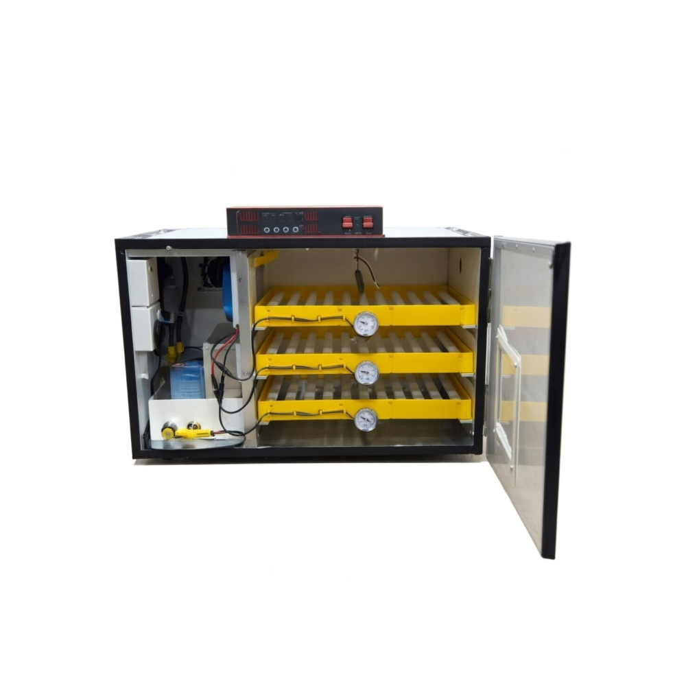 فقاسة الشاملة بلس بسعة 180 بيضة مصممة لتوفر للمربين نظام تفريخ احترافي مع تحكم أوتوماتيكي كامل، حيث تعمل بنظام متكامل يشمل التقليب والحرارة والرطوبة وتعبئة الماء بالإضافة إلى نظام تبريد داخلي متطور.