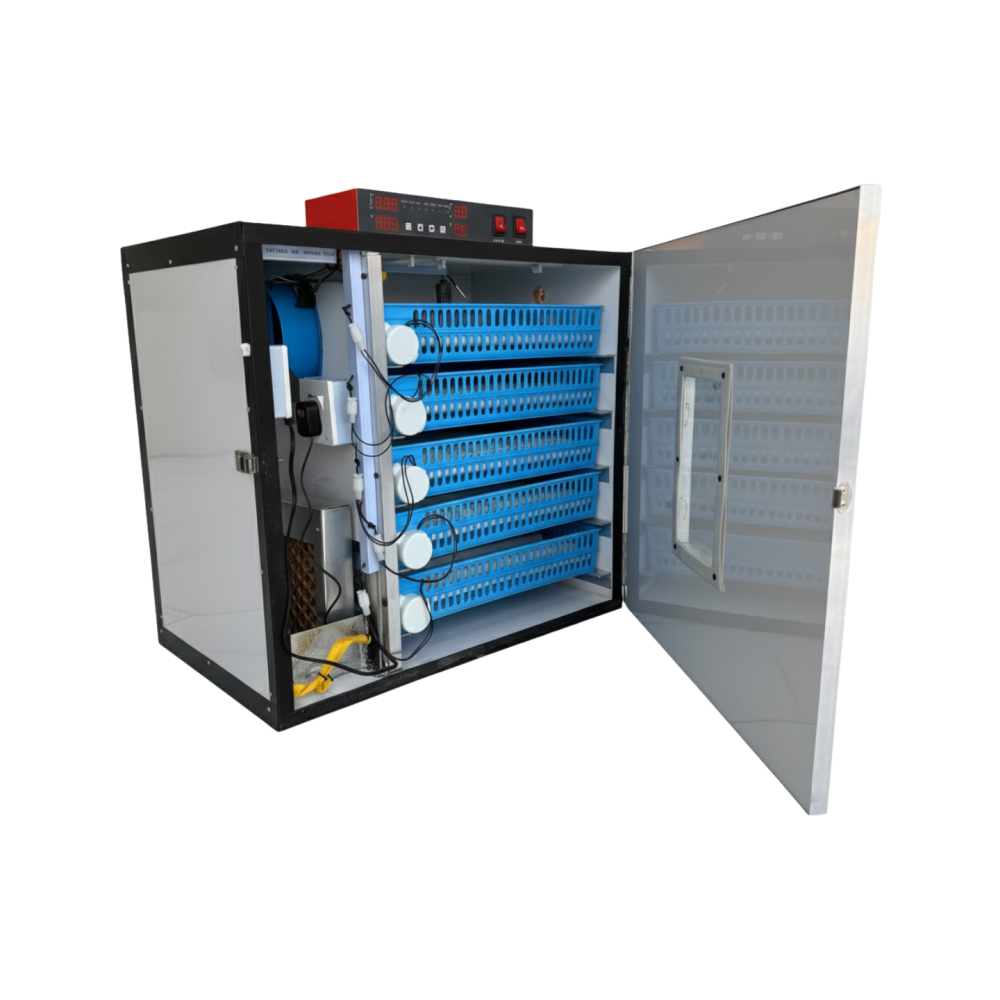 الفقاسة أوتوماتيك بالكامل، حيث تقوم بالتحكم الدقيق في التقليب ودرجة الحرارة والرطوبة وتعبئة الماء والتبريد الداخلي، مما يوفر بيئة مثالية وثابتة لنمو الأجنة ورفع نسب التفقيس إلى أعلى مستوى ممكن عند استخدام بيض مخصب وسليم.